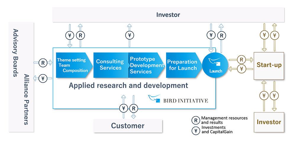 Through these services, BIRD establishes a research theme, forms a research team, conducts research and development, and prepares for commercialization, in order to achieve the fastest possible solution for an issue and to create a new business.