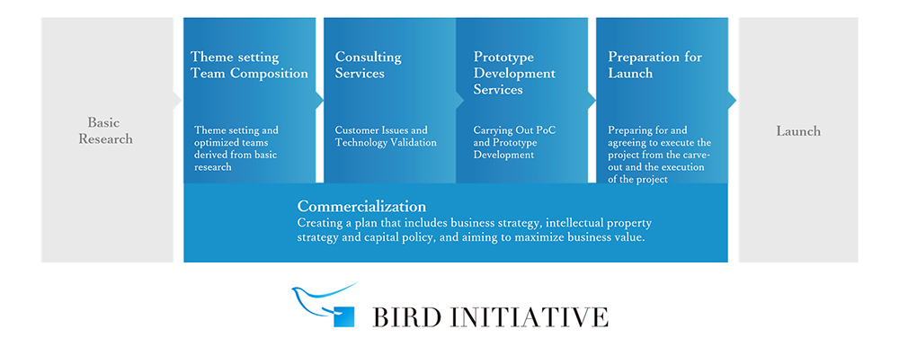 The technologies handled by BIRD will initially be core technologies obtained through research collaboration, and will be gradually increased in conjunction with businesses, financial companies, academic investors and alliance partners. BIRD aims to create 6 new businesses by 2025 through carve-outs.