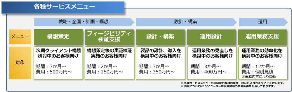 2)ITワークプレイス フィージビリティ検証支援(期間:2ヶ月、費用:150万円~)