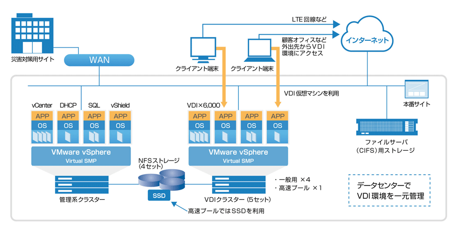 今回のVDI導入にあたり、約4,800名のプロフェッショナルを含め、関連会社を合わせると約6,400名あまりの職員が快適にVDIを利用できるインフラを用意する必要があった。