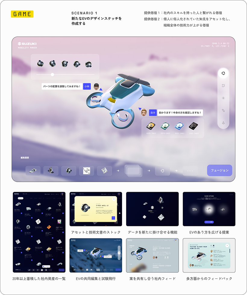 正畑氏:図面の登録や変更のような定型業務もゲーム感覚でできたら楽しいだろうと感じました。また、“パートナー”のシナリオも、ワークショップで出たキーワードをよく汲み取ってくれていました。現行システムの延長線がカスタマイズカーだとしたら、今回のプロトタイプはコンセプトカー。未来のニュアンスをしっかり感じられた、という声が多かったです。