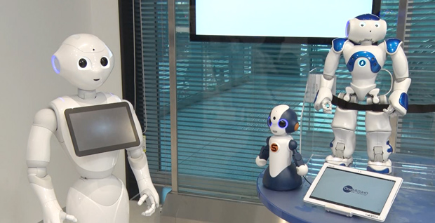 みずほ銀行 Fintechコーナー(左からPepper、Sota、NAO)