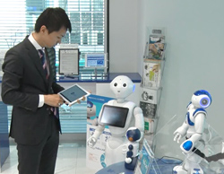 2017年1月16日、みずほ銀行とCTCは、みずほ銀行八重洲口支店にあるFinTechコーナーに3台のコミュニケーションロボット(Pepper 、Sota、NAO)を設置し、お客様に資産運用を案内するデモンストレーションを行いました。