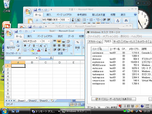 今までのターミナルサービスは、デスクトップ画面全部を表示していたが、今回追加されたRemoteAppでは、ターミナルサービスが動作しているサーバ上のアプリケーションをユーザーに対して公開することのできる機能である。これにより、アプリケーションを限定して利用させたい場合には大変有効である。しかもアプリケーションはクライアントの上で起動/動作しているかのように見えるため、ユーザーはターミナルサービスに接続していることを意識せず、違和感なくアプリケーションを使用することが可能になっている。さっそく試してみることにする。