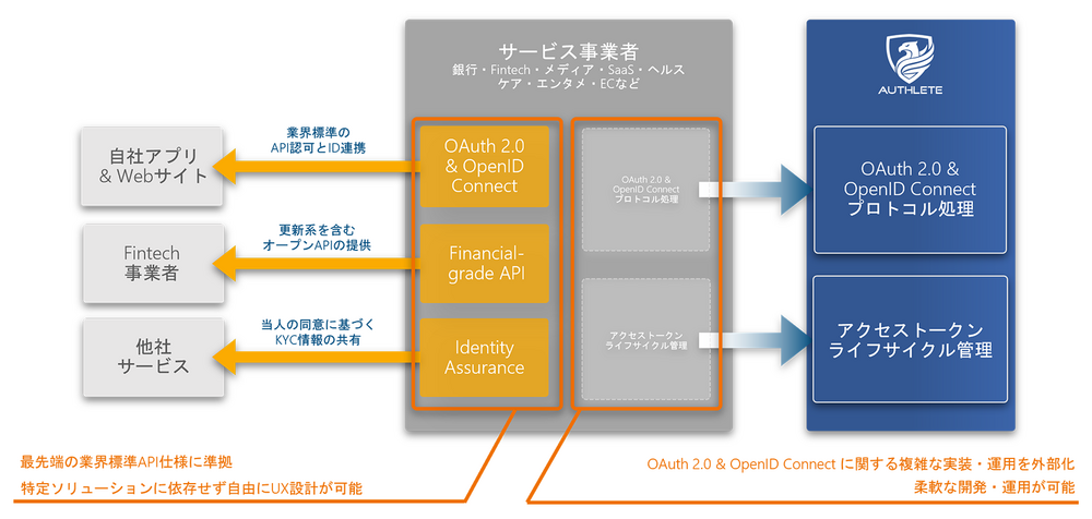 API認可バックエンドであるAuthleteは、金融サービスを中心にメディア・通信・EC/小売・B2B/B2E・ヘルスケアなど様々な事業者で次の理由から選ばれています。