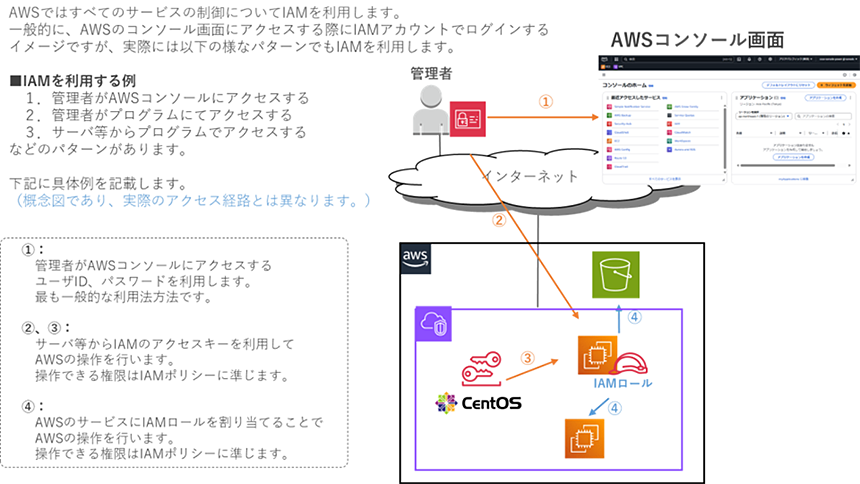 ②③サーバ等からIAMのアクセスキーを利用してAWSの操作を実施する