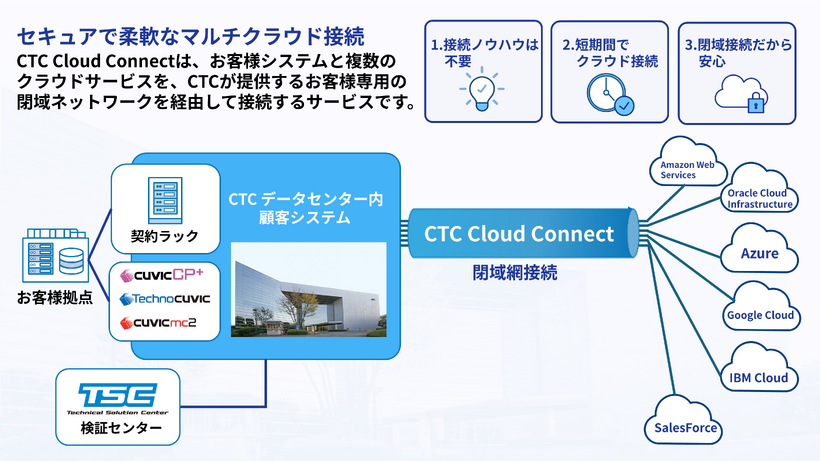 CTC Cloud Connect , CTC Cloud Connect X はCTCのデータセンターから複数のパブリッククラウドに接続するサービスです。