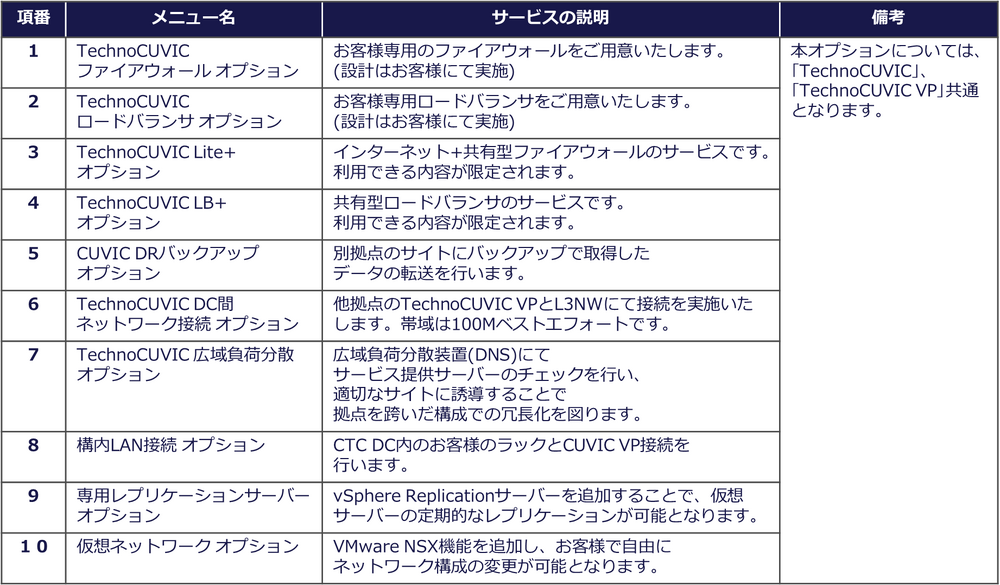 TechnoCUVIC VPでは、TechnoCUVIC同様のサービスをご利用いただくことが可能です。