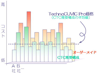 TechnoCUVIC Proにはボリュームディスカウントやオプションメニューもありますので、各社のコストは様々です。