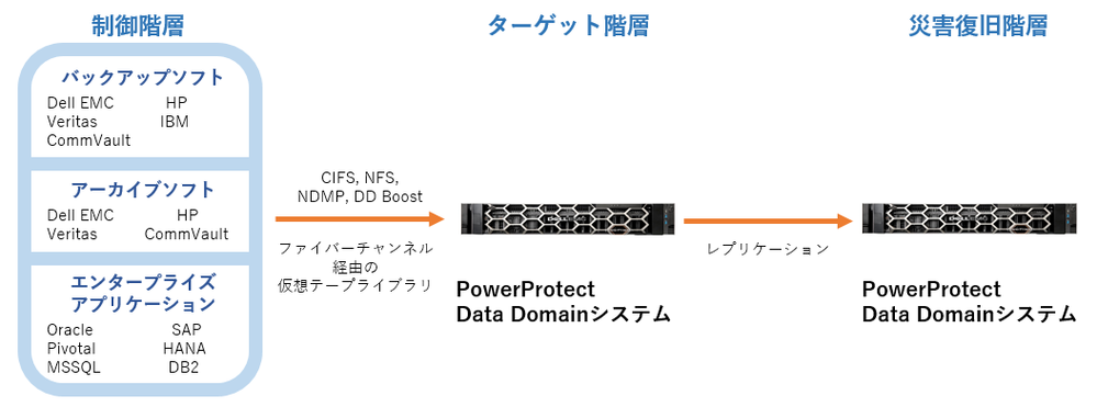 Dell EMC PowerProtect Data Domainは既存バックアップ環境を変えずに導入できるバックアップ保存先の重複排除ストレージです。