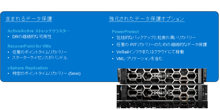 VxRailはVMwareソリューションと密に連携することでデータ センターのモダナイズ、ハイブリッド クラウドへの移行の加速、クラウド ネイティブ アプリケーションの利用を実現します。
