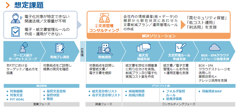 ペーパーレスやデジタル化による業務改革が進む中、膨大な量の紙文書を保管している企業では、電子化にかかる日数や費用、画像スキャンの精度、また、スキャン後の電子化されたデータの分類やタグ付け、管理方法などが課題でした。