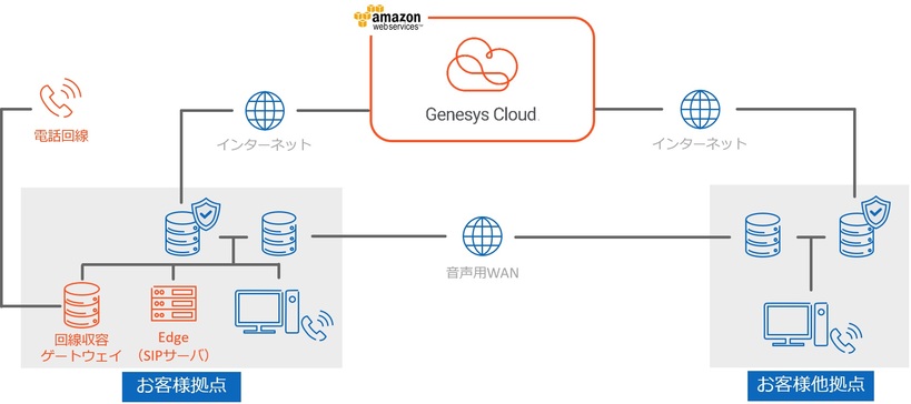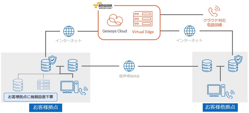お客様拠点に機器の設置が不要な構成です。