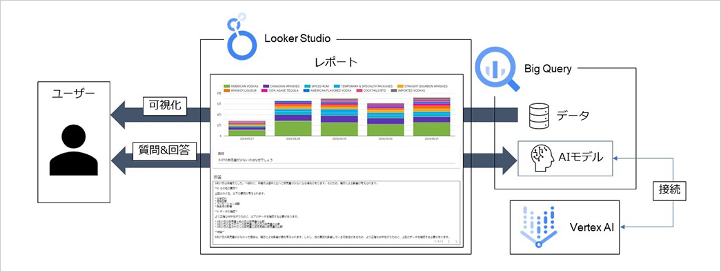 本記事では、Google の提供する BI ツールLooker Studioと、データウェアハウスBigQuery、及び ML プラットフォームVertex AIを利用して、生成 AI チャットボットを搭載したダッシュボードを作成する手順について解説します。