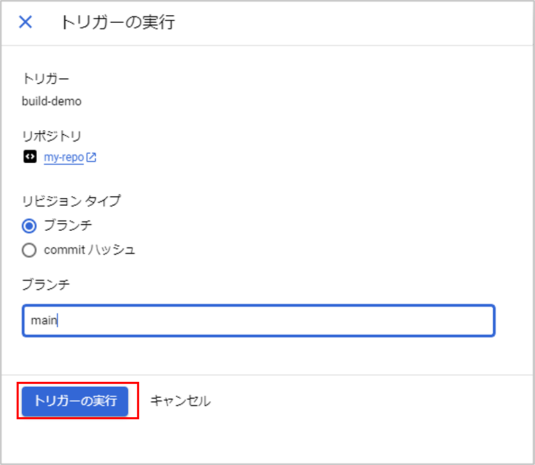 ビルドトリガーを作成し、手動でトリガーを実行します。