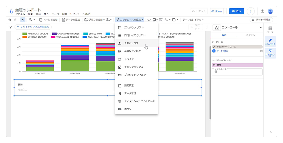 コントロールを追加から入力ボックスを選択し、コントロールフィールドに質問を設定します。