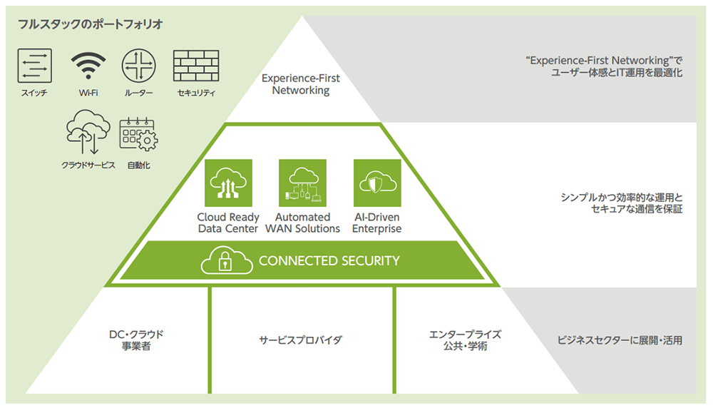 ジュニパーの“Experience-First Networking”は、AIを活用することでネットワーク&セキュリティインフラの自動化と可視化を推進し、ユーザー体感の改善およびIT運用の最適化を実現します。