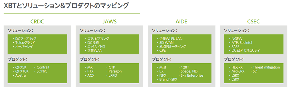 xBT - Xcross-functional Business Teamsは、ユーザーの業種やテクノロジーに合わせたソリューションおよびユースケースを提供するために構成された、製品部門横断型のジュニパーネットワークスのビジネスチームです。