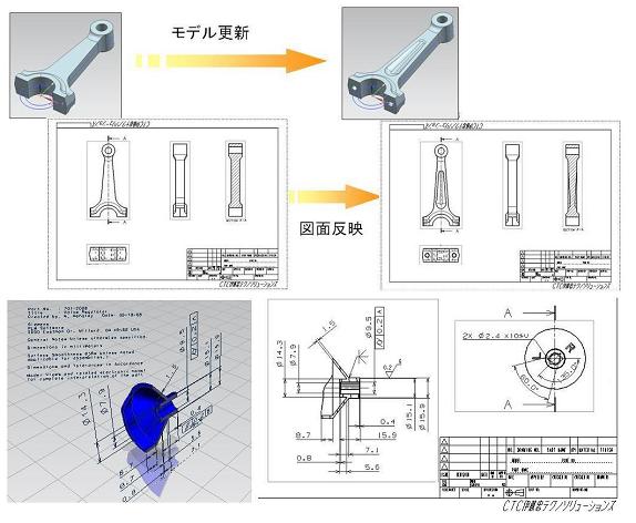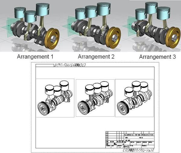 3Dモデルを2D図面のビューに配置することができ、3Dモデルの変更は、図面ビューに反映されます。