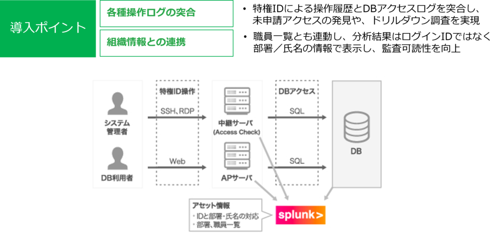 重要情報を取り扱う業務の統制強化、内部不正の抑止/発見を 目的として特権ID操作/DBアクセスの履歴をモニタリング