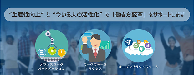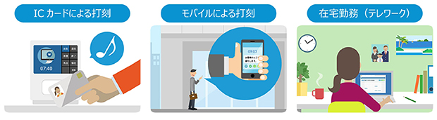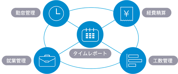 一元管理された様々な情報を元に従業員各人の働き方を可視化。従業員ご自身の時間管理意識、さらに可視化された情報を元にしたコラボレーションにより、お客様の生産性向上を支援致します。