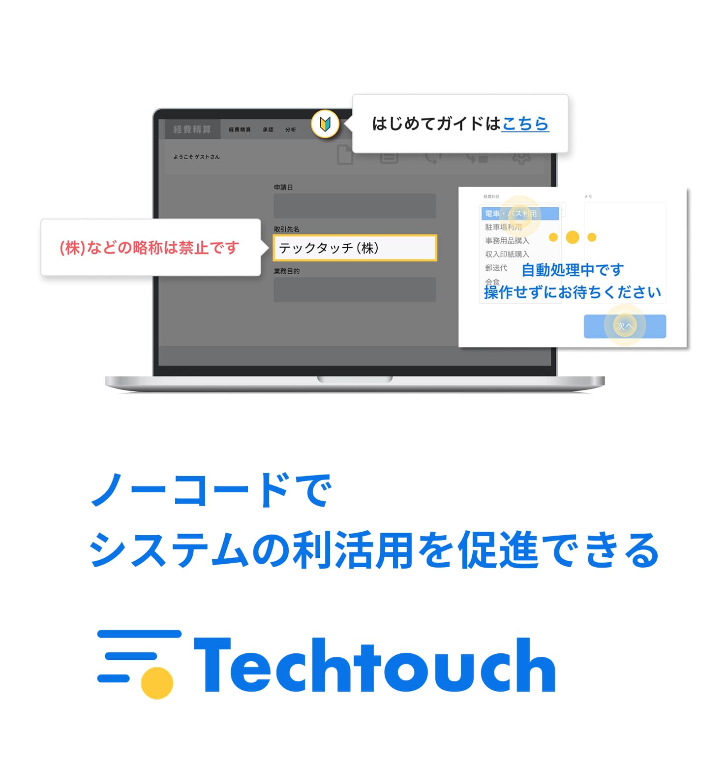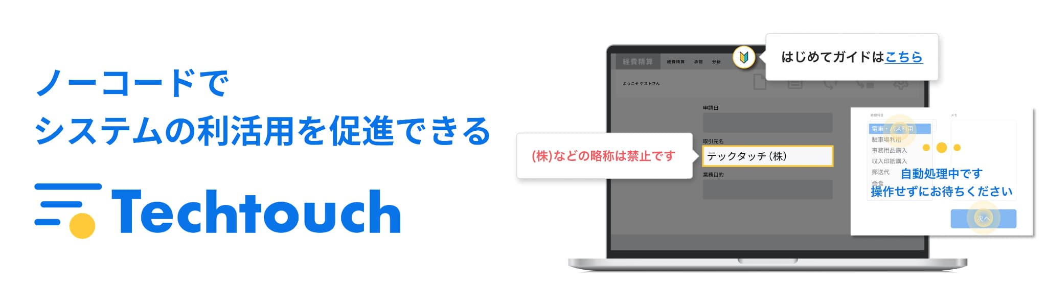 テックタッチは国内250社以上の導入実績がございます。公開事例も豊富にご用意しておりますので、詳しくはお問い合わせください。