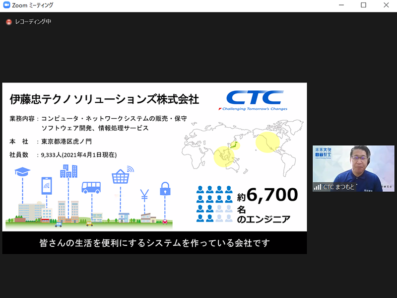1月21日(金)、東京都板橋区立加賀小学校5年生2クラスを対象に、出前授業「みんなでチャレンジ!ITエンジニア」をオンラインで開催しました。